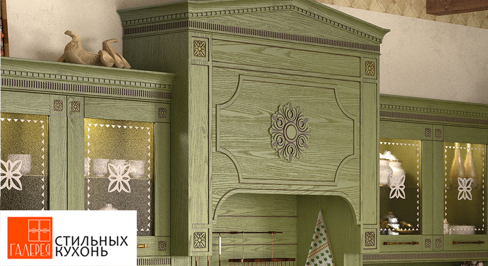 Актуальные цвета, фасады с резным декором, оригинальный портал под вытяжку. Фасады и декор из массива изготовлены в Италии. Кухня из этой коллекции будет радовать вас долгие годы.